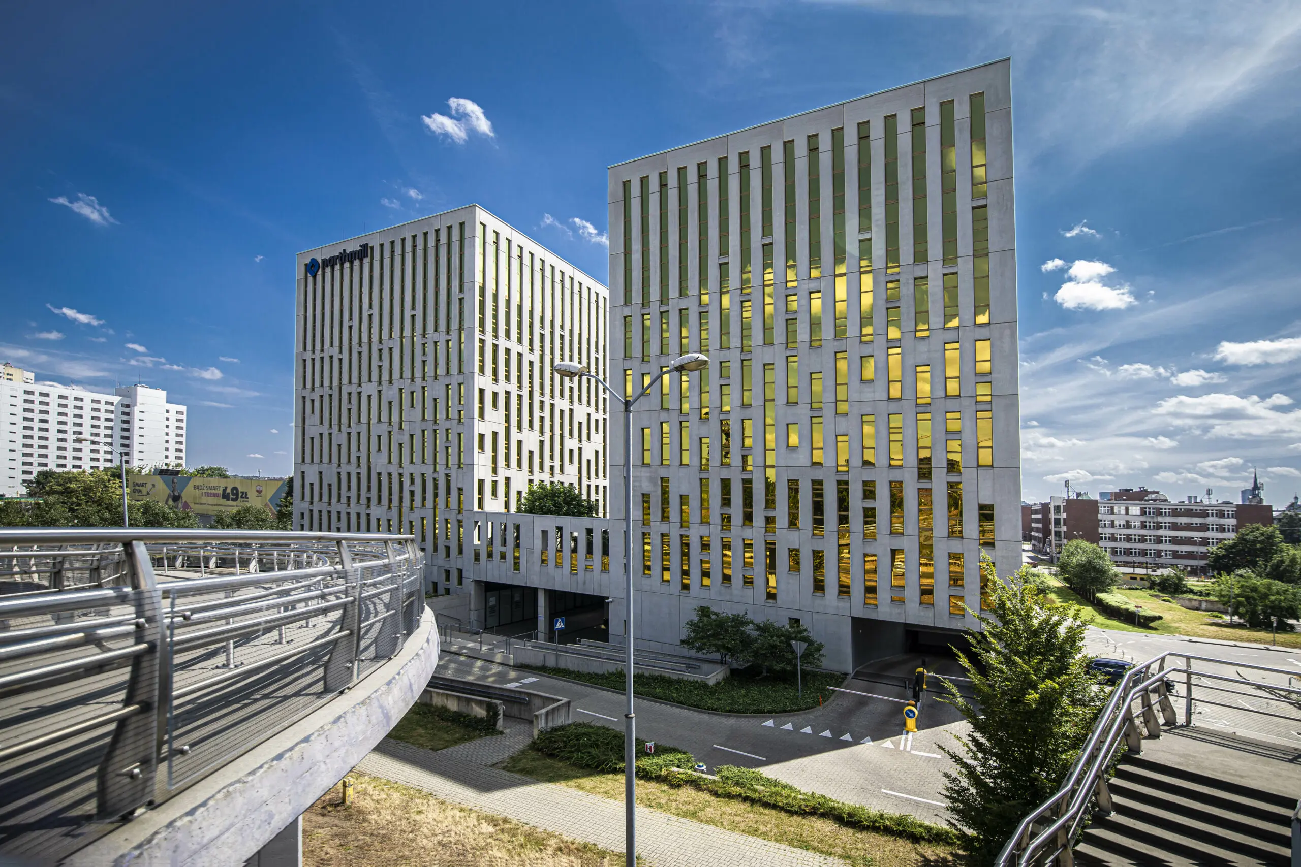 The buildings are in close proximity to two universities and the University of Silesia campus. It offers 30.2k sqm of modern office space, space is leased by tenants from the financial, technological, and service sectors. Both buildings have eight floors above ground, one floor below, and are connected via a public passageway.