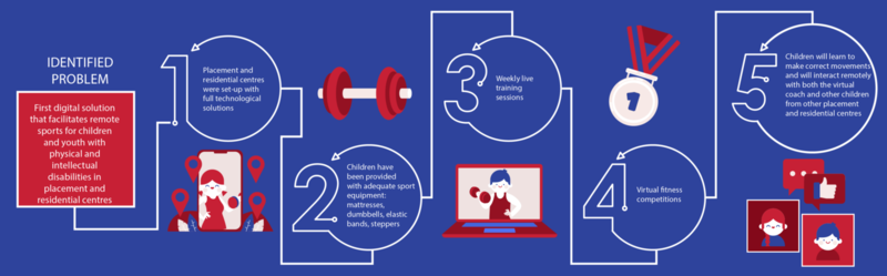 With the help of this technology, over 350 children will participate in fitness exercises, online contests, learn to make correct movements and will interact remotely with both the virtual coach and other children from other placement and residential centres.